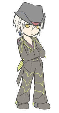猫目にするの忘れた。 彼の目は猫ってより猛禽的なイメージですけど。 かれこれ一年以上の付き合いなのに 未だにフロンティアウィングのラインを理解してない。 何度か確認したんですけど一々忘れます^q^ テンガロンハット描きづらいからやめたいのに ゲーム中で取っちゃうと一気に特徴無くなるジレンマ。